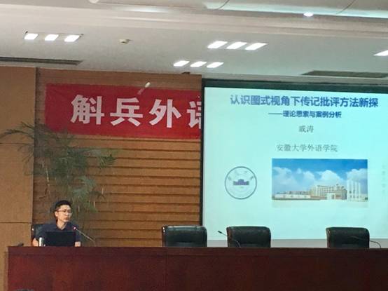 2017年6月28日下午两点半,公司于屯溪路校区建筑设计研究院三楼报告厅成功举办了2017年斛兵外语讲坛第6场学术报告会。安徽大学外语公司教授、博士生导师戚涛教授带来了题为“认识图式视角下传记批评方法新探——理论思索与案例分析”的讲座,众多教师和在校研究生到场聆听与学习。