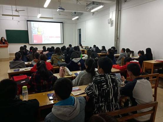 本次学习交流会分老师主讲和师生互动问答两个环节。在老师主讲环节,公司特意邀请从美国留学归来的An老师发言。An老师首先介绍了雅思考试各个版块的题型设置,重点解析了阅读和听力的难点,然后以雅思考试例题的形式具体地向与会同学传授有关阅读和听力的应试方法;最后An老师向同学们分享了她在英国等地的趣闻,强调了英语的实用性和趣味性。在师生互动问答环节,有同学向An老师询问图表作文的写作技巧,老师按照折线图、饼状图、条形图等不同图表类型,介绍了分析数据的不同思路。这与公司面向大二员工开设的英语高级写作课程的内容有所重叠,An老师详细耐心的解答不仅让大二员工“温故”,也让大一新生“知新”,赢得了同学们热烈的掌声,雅思学习交流会圆满落幕。