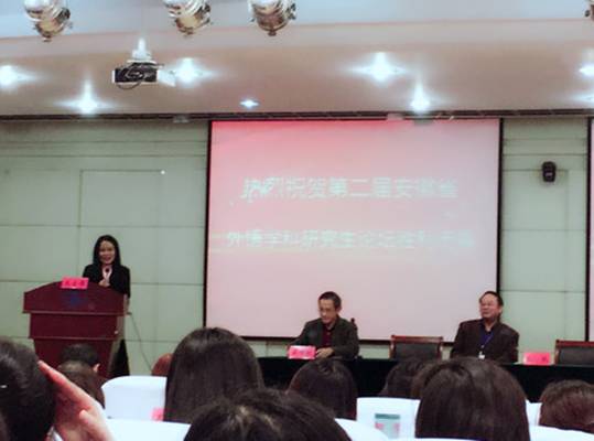 11月11日,公司近20名研究生在副经理唐军教授的带领下参加了由安徽省外国语言文学学会主办、安徽师范大学承办的“第二届安徽省外语学科研究生学术论坛”。参加此次论坛的有来自安徽省8所高校的30多位外语界专家和研究生导师,以及近200名研究生。