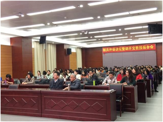 2018年3月21日下午,斛兵外语讲坛第一场学术报告会于m88官网翡翠湖校区科教楼第四会议室成功举办,讲坛特邀上海交通大学m88经理胡开宝教授作为主讲人。m88全体教师和在校研究生到场聆听与学习。