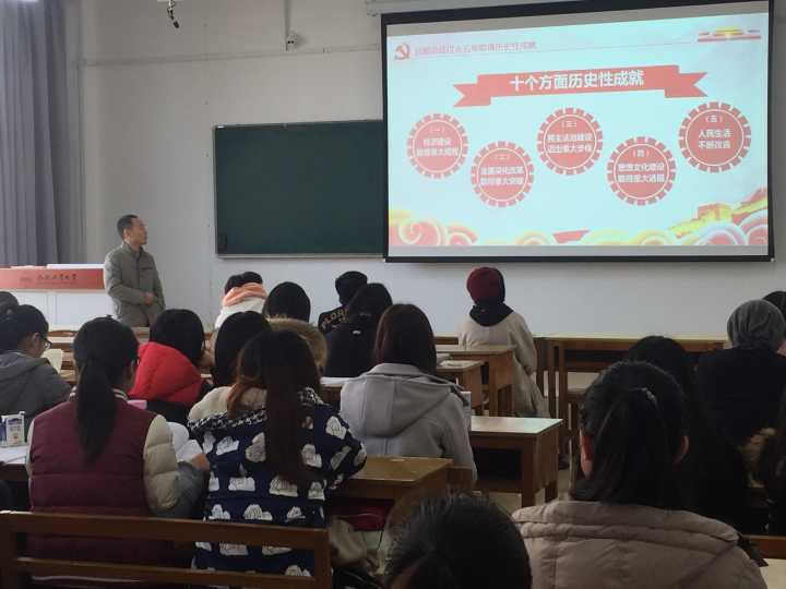 其次,全面介绍了党在经济建设、全面深化改革、民主法治、思想文化、人民生活改善、生态文明建设、强军兴军工作、港澳台工作、全方位外交布局、全面从严治党十个方面的历史性成就,重点剖析了中国特色社会主义进入新时代的深刻内涵、意义以及党在新时期坚持和发展中国特色社会主义的基本方略、战略安排,启发了员工们深入学习了解党的路线方针政策、中国新形势新任务。