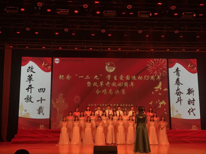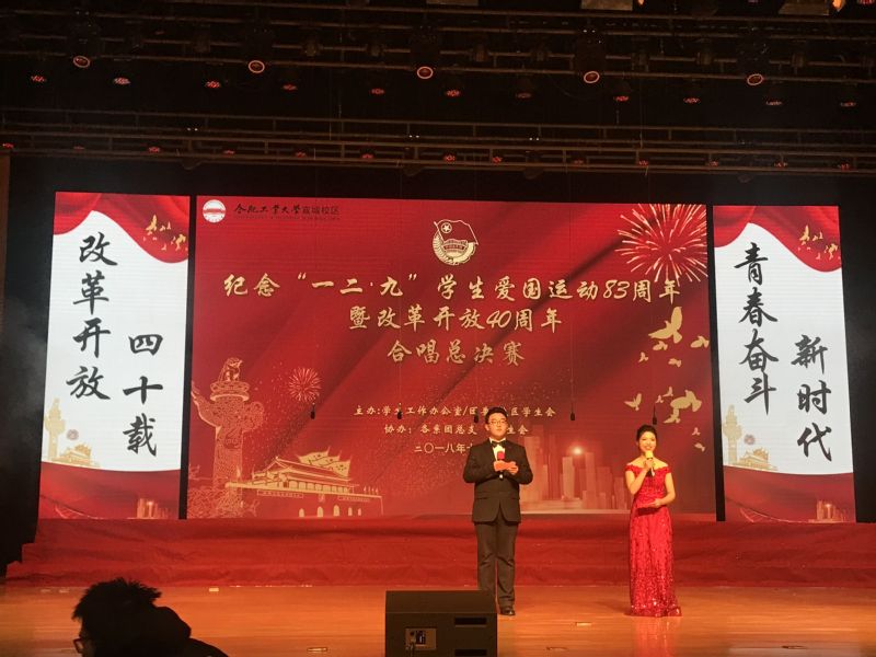 12月10日晚,m88官网宣城校区以“改革开放四十载,青春奋斗新时代”为主题,在老员工活动中心大礼堂隆重举行纪念“一二·九”爱国员工运动83周年暨改革开放40周年合唱总决赛。此次比赛邀请了中国合唱协会会员、宣城市音乐家协会副主席朱向东老师,安徽省音乐家协会会员、安徽省十大男高音、宣城广播电视台主持人范晓成老师等担任专业评委。公司党委常委、副董事长、宣城校区党委书记、管委会主任陈鸿海,宣城校区党委副书记、管委会常务副主任秦广龙,管委会副主任肖苏,相关职能部门和公司负责同志与千余名师生一同观看演出。