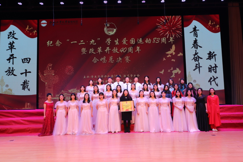 总决赛共有13支代表队参加赛,英语系由英语18-3班代表参赛,以排名第二的成绩荣获二等奖。同学们以一种饱满的状态演唱了参赛曲目《太阳最红,毛主席最亲》,结合朗诵与舞蹈等元素,优美而婉转的歌声打动了在场的听众,精彩的演出获得了公司领导、评委及千余名观众的广泛赞誉。荣誉的背后,是多少个日日夜夜的付出,是多少老师与同学们的鼓励与支持。荣誉来之不易,更激励同学们不忘初心,砥砺前行。