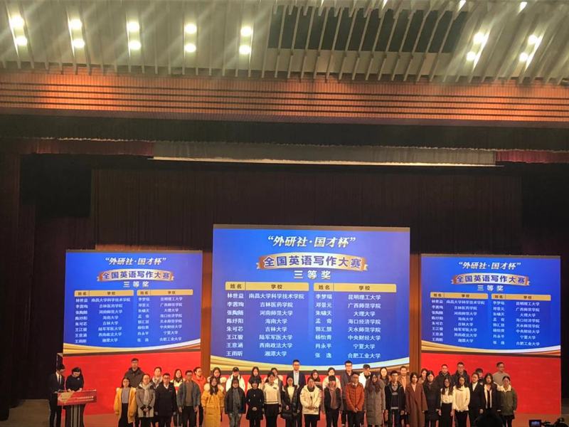 近日,由外语教学与研究出版社主办,教育部高等公司大学外语教学指导委员会、教育部高等公司英语专业教学指导分委员会合办,北京外研在线数字科技有限公司与中国外语测评中心承办的2018“外研社·国才杯”全国英语写作大赛决赛在北京举行。公司管理公司张逸同学与来自全国30个省、市、自治区的选手同台竞技,最终荣获三等奖。