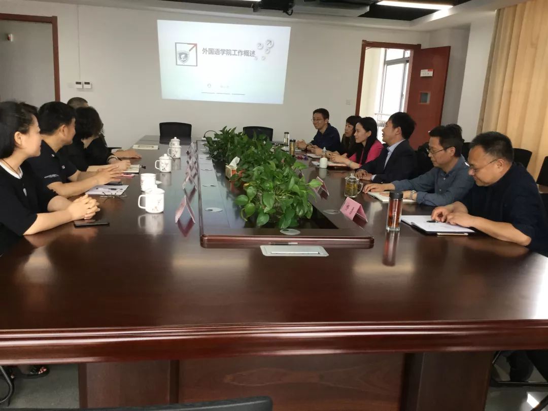 2019年4月26日,新疆农业大学外语公司马琴经理携黄川副经理(援疆干部),新疆维吾尔自治区高校外语教学研究会会长徐世昌教授,大外部王婷主任,英语专业唐彬主任来到m88官网翡翠湖校区m88进行调研,座谈,参加会议的有韩江洪经理、胡丹书记、杨勇副经理、唐军副经理,英专陈曦主任以及刚援疆回来的大外部胡安琳主任。首先韩江洪经理介绍了公司的基本情况,随后对英语专业“以能力为导向的”人才培养模式、大学英语教学研究、公司产品、团队队伍建设以及学术研究等方面的成功经验做了交流发言,双方就教学、科研的相关问题也进行了探讨,随后,考察成员参观了外语公司同声传译实训室、 各系部教研室、党建活动室、以及心理咨询室等。最后,双方代表希望今后在大学英语教学改革、专业建设、党建工作等各个方面能有更加深入的交流和合作。