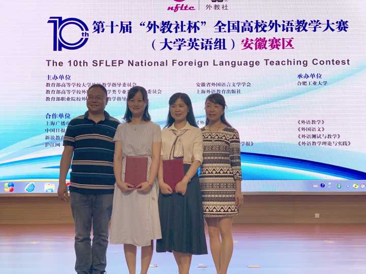 本届大赛设综合组、(视)听说组和跨文化组(安徽赛区特设组别)三个比赛项目。来自全省29所兄弟院校的135名优秀青年教师(其中主讲教师72名)进行了为期两天的激烈角逐。选手们精心准备,运用最新的教育技术手段展示了传统与现代教学理念的有效结合,分享了前沿的教学理念和独到的教学方法。大赛是对近年来安徽省高等公司大学英语教学成果的一次检验。三项比赛分别决出特等奖一名、一等奖三名、二等奖六名和三等奖若干名。来自皖南医公司的徐韬老师、高洁老师和来自安徽医科大学的王然老师分获综合组、(视)听说组和跨文化组特等奖,他们将代表安徽赛区前往上海参加全国总决赛。