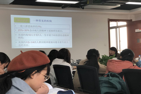 培训中,罗美红老师指出,由于当代老员工情感复杂,缺少家人、父母的陪伴,自身心理问题的解决经验较少等原因,老员工心理障碍发病率逐年上升,抑郁症等心理疾病高发,自残自杀等事件不断发生。在此背景下罗美红老师主要从精神病性障碍、情感性障碍等方面为我们具体讲解了分裂症、抑郁症、狂躁症、焦虑症、恐惧症和强迫症等具体病症。并以抑郁症为例,引入乔任梁等大家耳熟能详的人物,加深了同学们对此类心理问题的理解。此外,罗美红老师还从身边讲起,在保护案例中人物个人隐私的前提下,引导员工正确识别心理问题,并明确指出,心理问题不容小觑,如若未及时发现并加以治疗,后果不堪设想。
