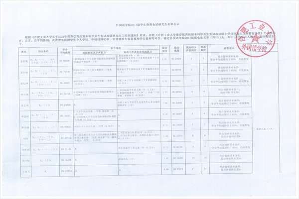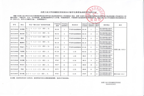 根据《m88官网关于2021年推荐优秀应届本科毕业生免试攻读研究生工作的通知》要求,参照《m88官网推荐优秀应届本科毕业生免试攻读硕士学位研究生工作暂行办法》,本着公开、公正、公平的原则,此次推免按照员工个人申请、申请材料初审、申请材料专家复核和员工答辩等环节,确定m882017级推免生名单(含宣区),具体情况如下: