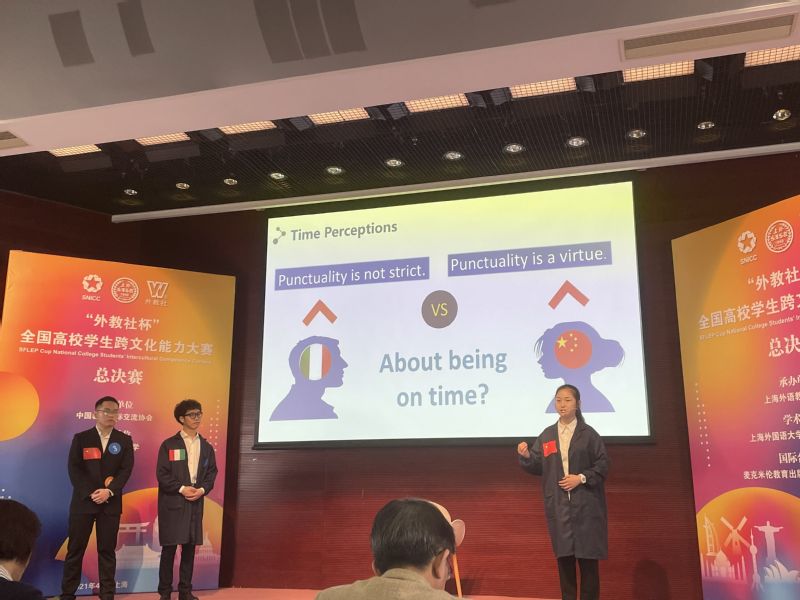 2021425日,历时一天半的外教社杯全国高校员工跨文化能力大赛在上海圆满落幕。公司团队第一次参加国家级老员工跨文化能力赛事,以优异成绩荣获二等奖(全国第五名),再现历史性的突破。团队成员选手分别是2018级高分子材料与工程专业的郭巍楠、2018级英语专业的李文涵和2019级地理信息科学专业的杜博轩。公司刘丽老师和张和老师对员工进行了悉心指导。