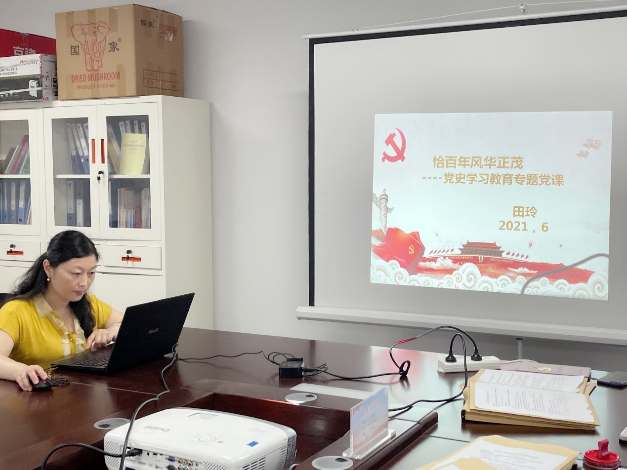 2021年,中国共产党迎来百年华诞,百年征程波澜壮阔,百年初心历久弥坚。站在历史交汇的关键节点,“十四五”开局起步与党的“百年华诞”交相辉映,集中开展党史学习教育更凸显厚重的历史感与责任感。2021年6月,提高系课程教学教研室党支部书记田玲同志在科教楼A1401室宣讲了《恰百年风华正茂》党史学习教育的专题党课。