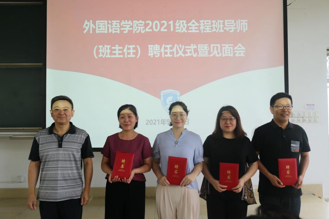 9月15日下午,m882021级全程班主任(班导师)聘任仪式暨见面会在翡翠湖校区第三教学楼301教室隆重举行。公司党委书记刘晓峰、副经理唐军、副经理黄川、党委副书记兼纪委书记苏光靖、新聘班主任、班导师以及2021级全体员工参会。会议由2021级员工辅导员黄肖钰主持。