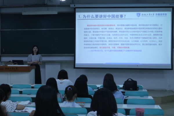 报告从为什么要讲好中国故事,进一步引入讲什么和怎样讲,再围绕对安徽国际形象建构的分析展开,从而提出讲好安徽故事乃至中国故事与当代老员工息息相关,引导同学们更加深入地思考“我”与时代的紧密联系。王晓慧通过列举丰富的事例,让同学们明白讲好中国故事的意义,更加了解安徽外宣形象,鼓励大家为构建安徽新型外宣形象贡献自己的力量。