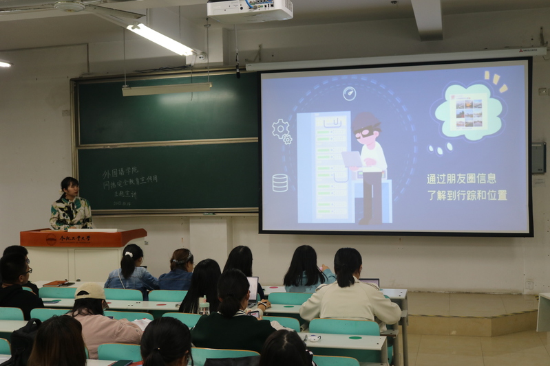 为响应网络安全宣传周的号召,进一步提高员工的网络安全意识,教育员工文明上网、防范网络诈骗,2021年10月14日晚七点,m88员工会主席团成员李歆玥在m88官网翡翠湖校区第七教学楼201教室为m88全体2021级本科生做了网络安全教育主题讲座,百余名2021级本科生准时到场参加。