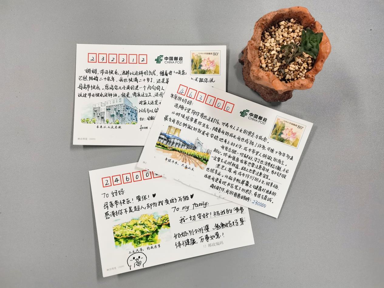 时值母亲节来临之际,本次活动为同学们提供精美的明信片,号召大家感恩母亲,寄托真情。活动中,同学们使用印有工大标志性景色的明信片,纷纷拿起手中的笔,怀揣着对母亲的爱,一字一句在明信片上写下对母亲的深情祝福,向远在家乡的母亲送去一份爱与思恋。活动结束后,主办方将明信片统一邮寄。