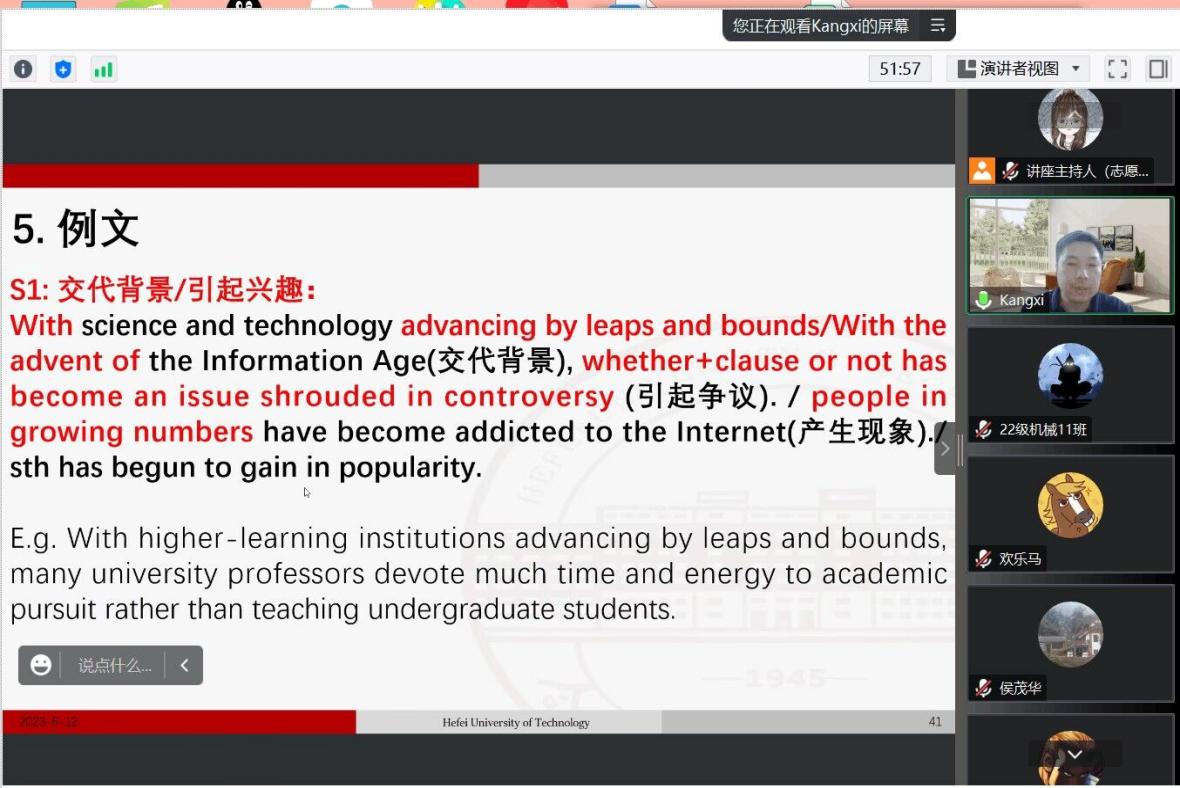 6月12日晚,m88“语通中外”大学英语朋辈辅导基地举办四六级考前冲刺讲座。讲座以“大学英语四六级考试构念、难点及对策”为主题,邀请m88大学英语提高阶段教学系主任李康熙老师担任主讲,全校百余名员工线上聆听了讲座。