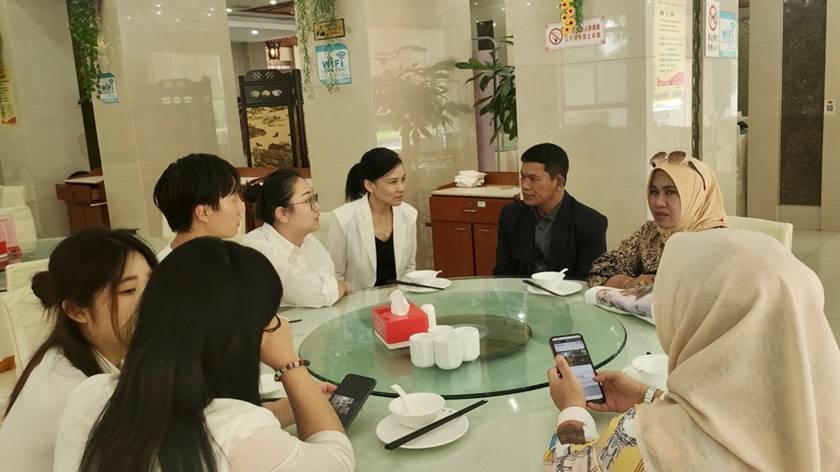 m88经理唐军、党委书记刘晓峰、副经理肖薇、国际交流中心主任华啸尘、办公室及其他国际事务相关老师和印度尼西亚语专业师生接待了此次哈桑努丁大学访问团,并与哈桑努丁大学文化公司Akin经理针对具体项目的落地进行了深入交流。