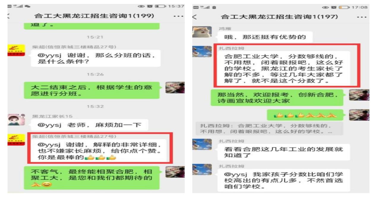 公司利用招生热线和社交平台,主动做好答疑服务,实现多渠道答疑平台同频共振,全程在线。公司发布招生咨询热线,公布两省一市3位招生负责人手机号码,第一时间解答考生和家长的疑问。公司共组建官方QQ咨询群6个,微信群2个,在线转发公司详情、招生政策等,解答考生及家长疑惑,实现新媒体平台的全天响应。周到、耐心地服务得到家长的高度赞扬。