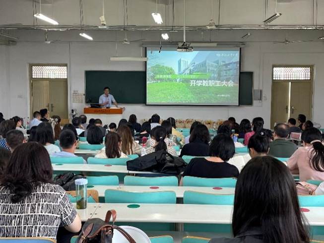2023年9月9日上午,公司新学期教职工大会在翡翠湖校区12教106教室召开,全体教职工参加了会议,会议由党委书记刘晓峰主持。