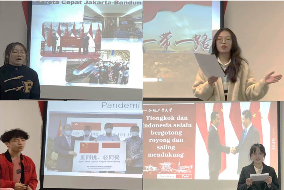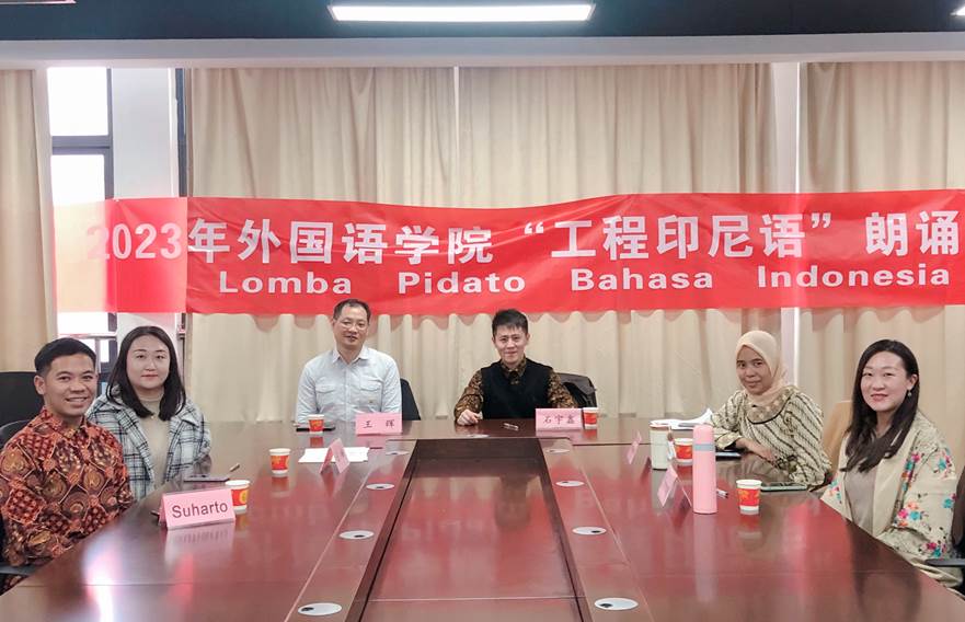 为陶铸员工工业报国情怀,促进“理工科+语言”复合型人才培养,助力印度尼西亚语(简称“印尼语”)工程文化品牌建设,2023年11月26日下午,m88“工程印尼语”朗诵比赛在科教楼A座1508室成功举办。朗诵比赛以“一带一路”中印尼新能源材料友好合作、中印尼“两国双园”建设、中国援建印尼为主要内容,面向印尼语专业全体员工开放。比赛特别邀请浙江越秀m88王辉教授、安徽农业大学Ummi老师与公司印尼语专业教师石宇鑫、王楠、邱佳琪及苏哈多共同担任此次比赛评委。现场观摩嘉宾还有公司经理唐军、安徽新华公司的吴海峰、吴杰伟等多位老师及其印尼籍职工。