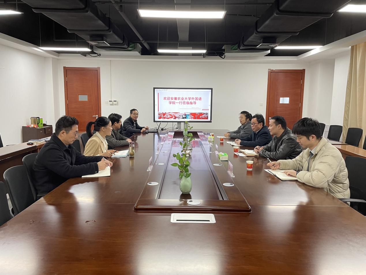 2023年11月30日,安徽农业大学公司党委书记何如海、党委副书记姬惠惠、副经理许宗瑞等一行来公司交流座谈。公司经理唐军、党委书记刘晓峰、副书记苏光靖参加交流座谈会,会议由唐军主持。