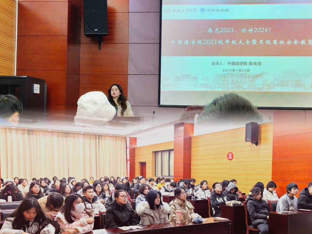 为贯彻公司寒假期间员工教育管理工作有关要求,帮助同学们提前谋划并顺利开启安全、丰富、充实的寒假生活,提高寒假离校期间的安全防范意识,外国语公司1月22日下午于翡翠科教楼A座第五会议室开展2023级年级大会暨寒假安全主题教育。公司全体2023级本科生参加,辅导员黄肖钰主持会议。