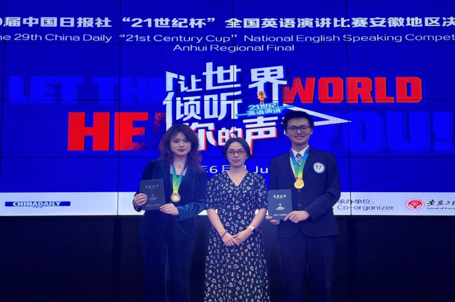 近日,第29届中国日报社“21世纪·可口可乐杯”英语演讲比赛安徽省决赛在安徽工程大学成功举行并圆满落幕。本次比赛汇聚了来自全省十余所高校的21名选手,围绕“传统文化复兴”主题各展风采。经过激烈的角逐,公司经济公司陈安熠同学(潘晨曦老师指导)和朱灵娜同学(郑园琴老师指导)脱颖而出,分获安徽省冠军和季军两项殊荣,成功晋级全国总决赛。