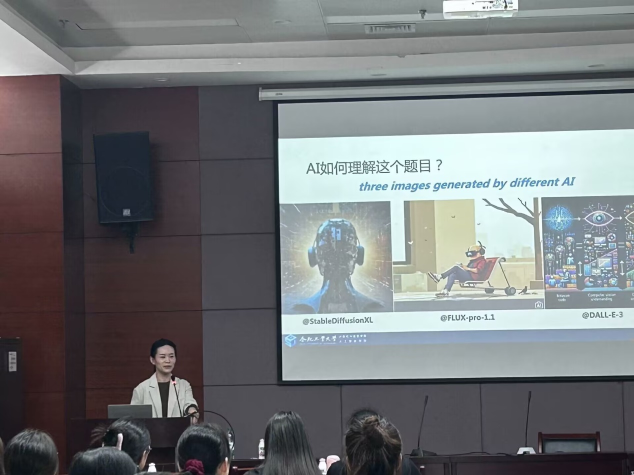 互动环节,师生听众积极提问,胡老师耐心地解答了一系列关于AI的不同角度的问题,如AI是否会取代人类进行翻译、会给语言员工就业带来怎样的挑战、初学者应当如何学会利用AI助力日常学习等。她强调,AI技术潜力无穷,能力巨大,可以广泛应用,助力人类开拓探索,但也需要伦理约束和价值判断,是当下人类的重要命题,我们有必要审慎对待。
