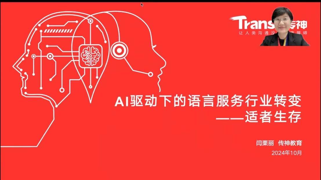 2024年10月24日,公司特邀传神教育资深讲师闫栗丽作为主讲嘉宾,带来了一场聚焦于AI在语言服务行业应用与影响的讲座,经理唐军向闫栗丽表示了热烈的欢迎和衷心的感谢。