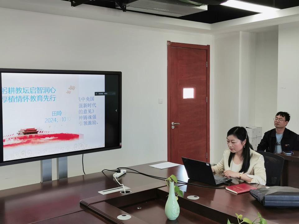 首先,支部书记田玲开展了题为“躬耕教坛启智润心,厚植情怀教育先行”的党课教育活动,从突出政治标准的首要地位、明确职业道德的高线要求、丰富爱生情怀的深刻内涵和拓展学习践行的实践路径四个方面,号召支部党员老师要大力弘扬教育家精神,牢记为党育人、为国育才的初心使命,树立“躬耕教坛、强国有我”的志向和抱负,自信自强、踔厉奋发。支部党员认真聆听党课,纷纷表示在今后的工作中要继续深化课程改革,着力推进素质教育,主动增强师德师风建设,深入开展公司产品研究,有效提升公司产品质量,为强国建设与民族复兴伟业作出新的更大的贡献。