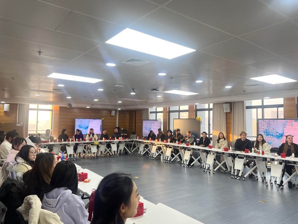 2024年12月31日下午,科教楼A座1208教室布置了喜迎新年的装饰,m88举办了一场别开生面的小型新年联欢活动。公司经理唐军、副经理肖薇、外语系主任陈曦、国际交流中心主任华啸尘、语言服务中心主任黄文娇以及唐宇香、张结根、苏凌云、陈星等老师与Deasy、Edmund、Haydee、Zig等外籍语言教师、职工和部分大一新生共同参加了联欢。
