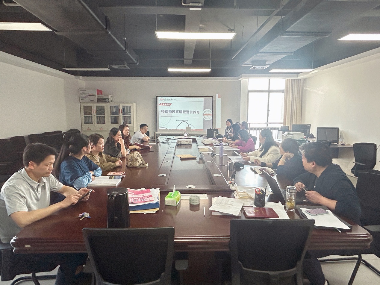 2025年3月26日下午,m88大学英语一系课程教学教研室党支部在科教楼A-1401室召开高校教师师德师风专题研讨会。会议由支部书记田玲主持,翡翠湖校区全体教研室教师均参会。