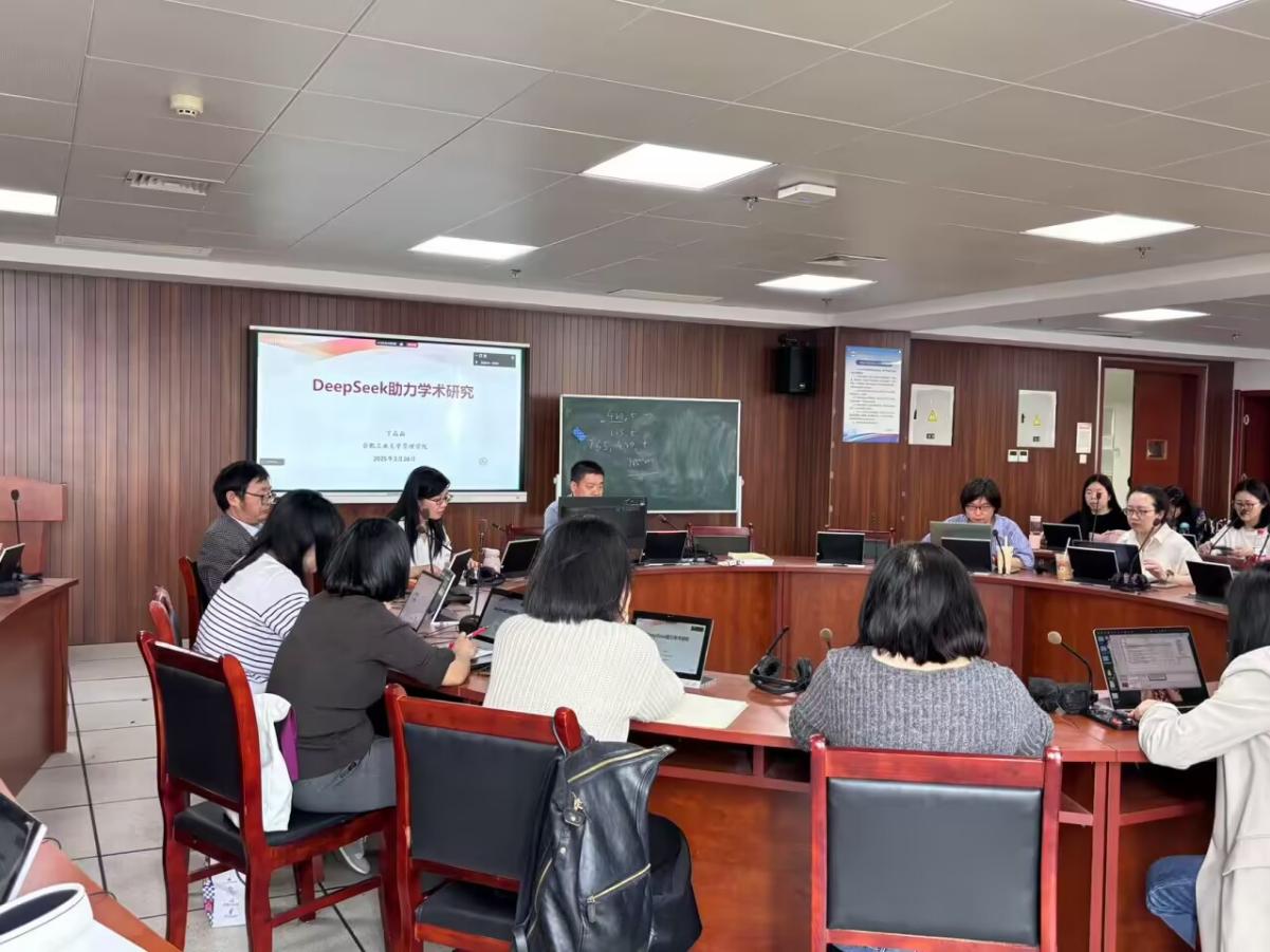 2025年3月26日下午,公司在翡翠湖校区科教楼A座1203教室举办了“2025年斛兵外语讲坛‘科研产出大家说’暨研究生交流年会第一场学术报告”。m88官网管理公司丁晶晶教授应邀为公司师生作题为“DeepSeek 助力学术研究”的主旨报告。