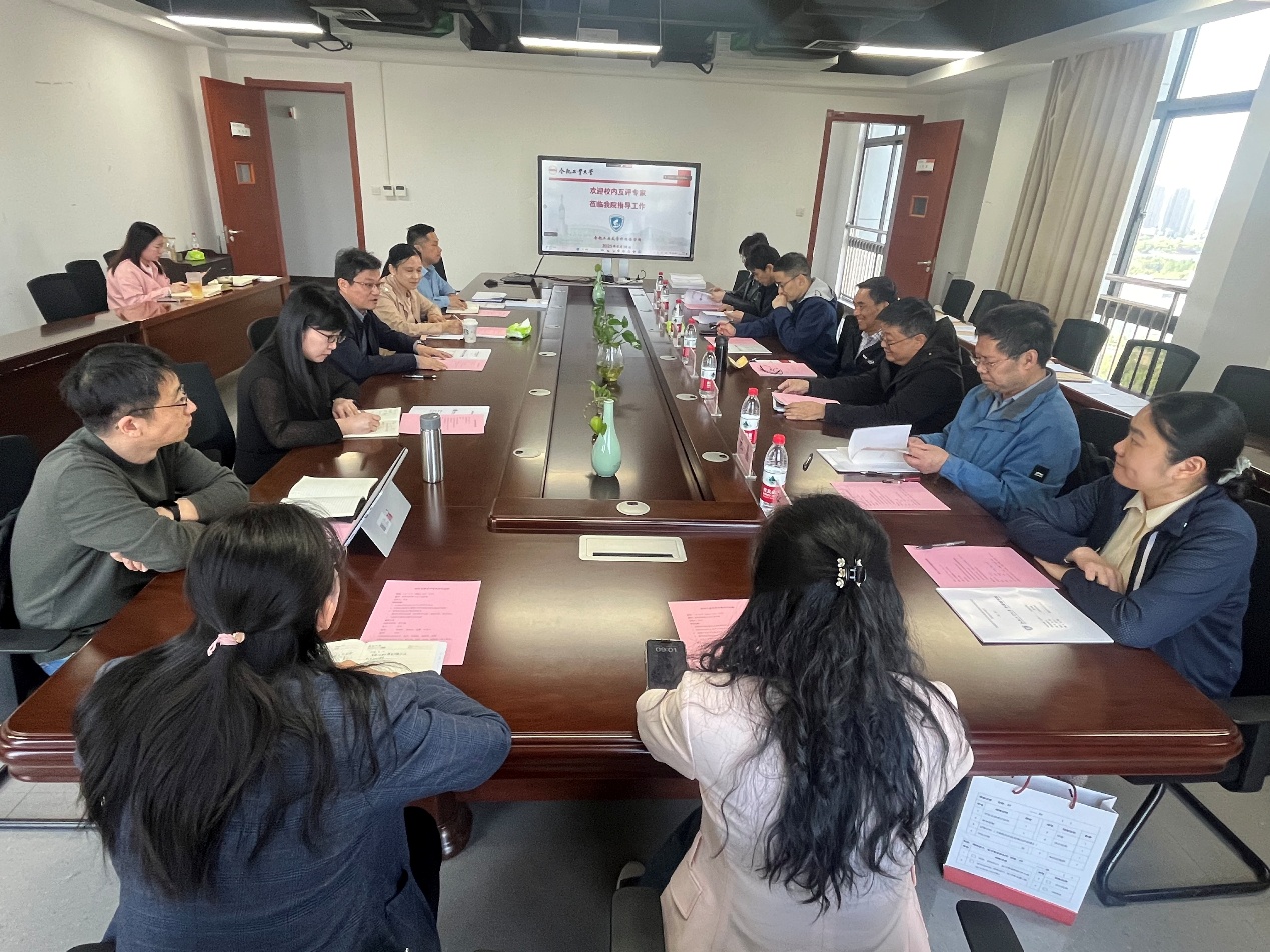 根据公司本科公司产品审核评估互查互评的工作部署,为扎实推进公司本科公司产品迎评促建工作,4月14日上午,公司督导专家吴子稳以及管理公司副经理裴军一行莅临公司开展互查互评工作。会议由唐军经理主持,公司领导班子全体成员及各系主任等参会。