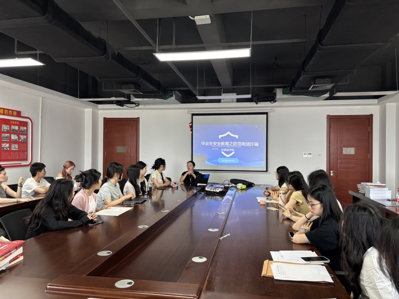 为切实增强毕业生的安全防范意识和自我保护能力,护航其平安、顺利地开启人生新篇章,m88于5月29日在翡翠科教楼A座1508会议室开展了2025届研究生毕业生离校主题教育之“筑牢反诈防线·护航青春启航”专题教育活动,活动由研究生辅导员金惠萍老师主持。