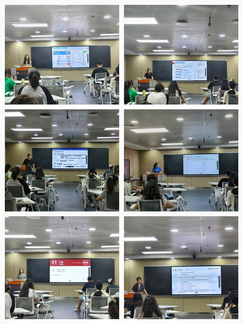 分享会上,即将毕业的2025届四名研究生和两名本科生结合个人经历与备考领域分享了多元职业赛道上的成功经验:董理颖同学强调教师编备考需“目标明确”,笔试模块化学习,面试注重创新教学设计;管文慧同学分享选调生高分技巧,分模块突破行测;蹇雯雯同学为非师范生提供 “破壁”策略;孙月朋同学剖析江苏选调特色题型,强调履历积累的重要性;王奕同学详细解答了国考特殊岗位备考三阶段,注重速度与规范表达;刘畅同学分享了高分心法,强调科学规划与持续积累。这些成功案例充分说明,明确的职业定位、过硬的专业素养与科学的备考策略是突破竞争的核心优势。