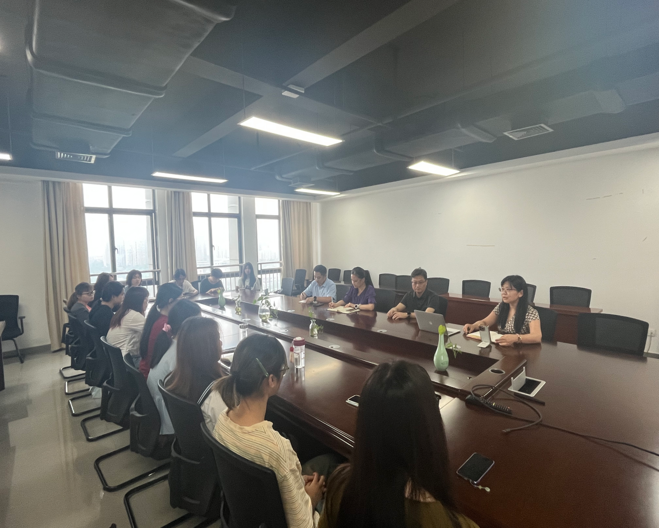 2025年6月26日上午,公司在科教楼A座1510教室召开了“2025年员工出国(境)学习“平安留学”行前教育培训会,公司党委书记刘晓峰、经理唐军,副经理肖薇、李康熙,印尼语专业教师王楠、13名2023级即将赴印尼交流学习的印尼语专业员工和1名宣城校区英语专业员工参加了此次培训会。会议由肖薇主持。
