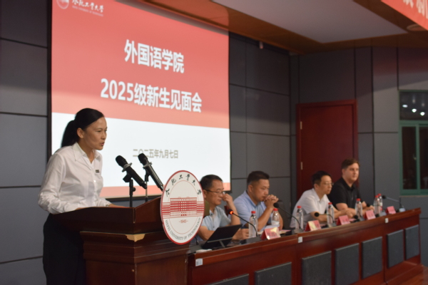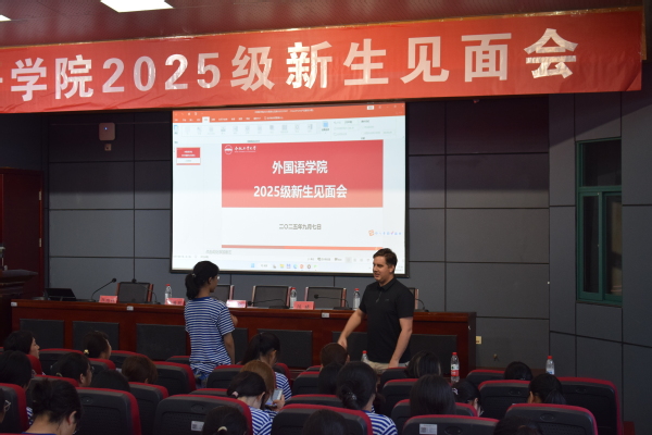 9月7日下午16时,宣城校区英语系在行政楼102举行2025级新生见面会,m88经理唐军、副经理李康熙、外语系主任陈曦、外籍教师Scott Campbell及2025级全体新生参加了见面会,本次会议由英语系主任陈路林主持。