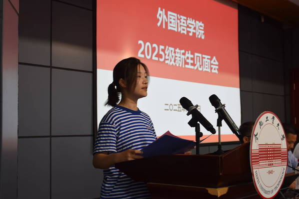 2022级员工周熠菲以“学业与成长”为主题,通过“单词背后的文化密码”“演讲台上的自信时刻”等实例,生动展现外语学习的魅力,建议新生“多听、多读、多尝试”,勇于突破自我;2025级新生代表孟程真表达了对专业的热爱与对未来老员工活的憧憬,承诺将珍惜时光、脚踏实地,努力成长为有担当、有情怀的外语人,以语言为桥,向世界讲述中国故事。